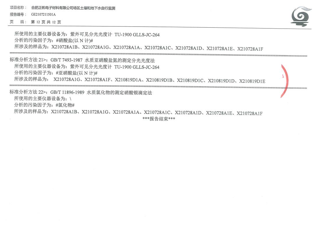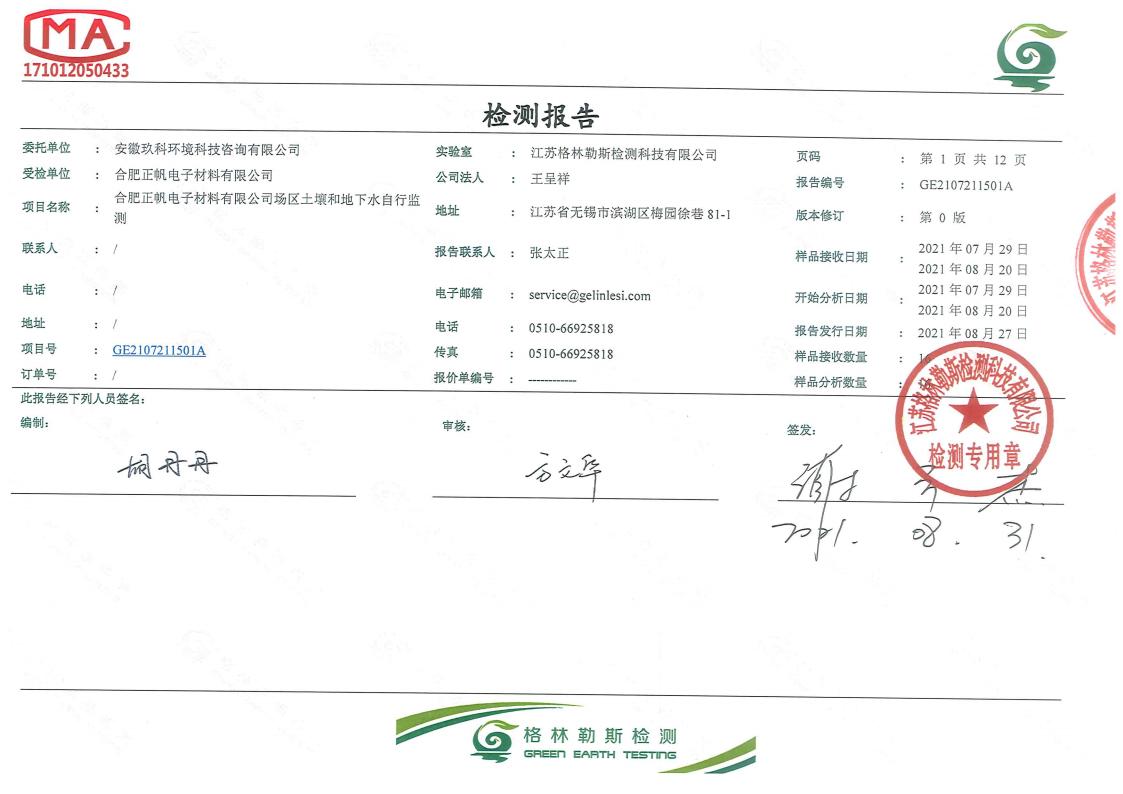 下一條:合肥正帆電子材料有限公司土壤檢測報告